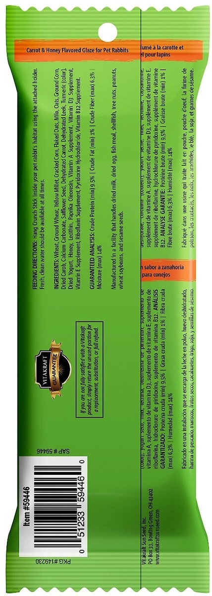 - Vitakraft Crunch Sticks Wild Berry & Honey Rabbit Treat, 2-pack$5.98 Chewy Price$6.98 List Price$5.68 Autoship PricePromo, New Customers Only: Spend $49+, Get $20 eGift Card