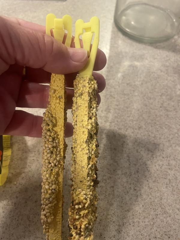 It is recommended to hang one Crunch Stick inside your parakeet's habitat using the attached clip holder. It should take the bird a few days to indulge in this treat stick.