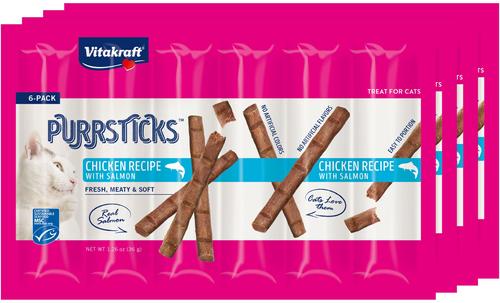 Vitakraft PurrSticks Meaty Chicken with Salmon Segmented & Breakable Deliciously Tender Cat Treats, 4 count, pack of 6