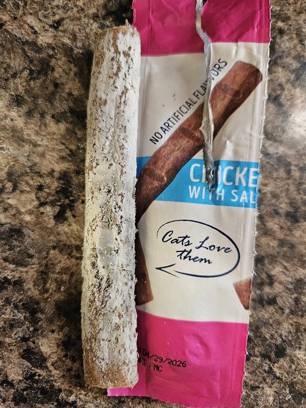 Mutiple of the sticks in the pack my MIL ordered for our boys have mold growing on all or part of them, they don't expire till 2026 but there's no way these should be fed to a cat.