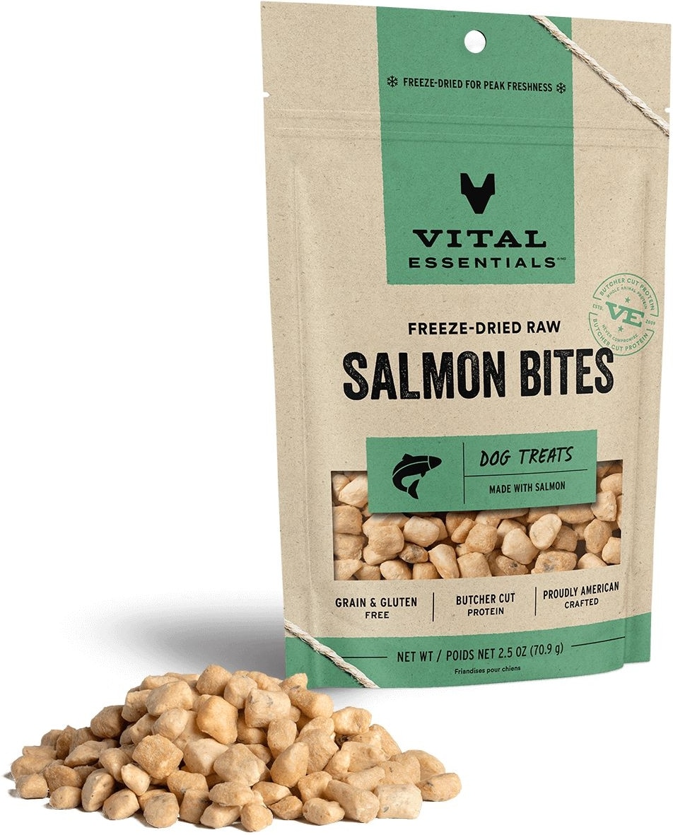 Vital Essentials Salmon Bites Freeze-Dried Raw Dog Treats, 2.5-oz bagRated 4.6148 out of 5 stars1215Reviews