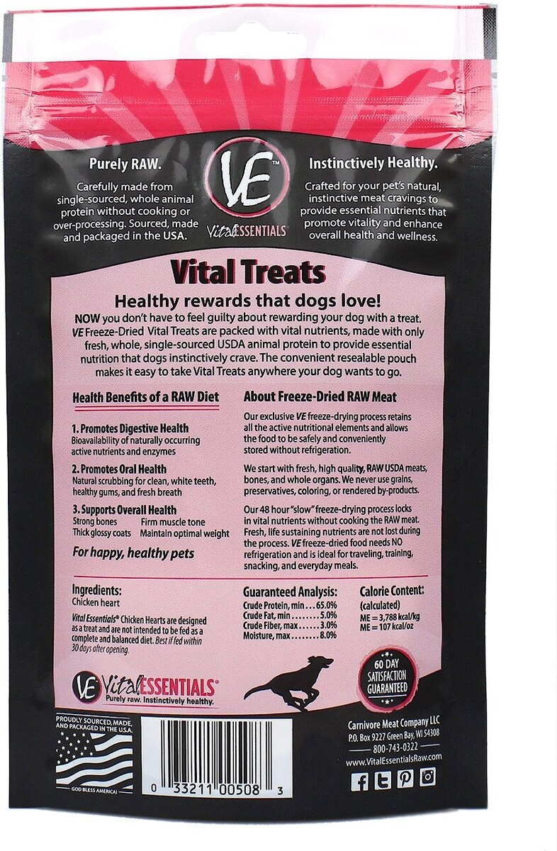 Vital Essentials Chicken Hearts Freeze-Dried Raw Dog Treats, 2-oz bag