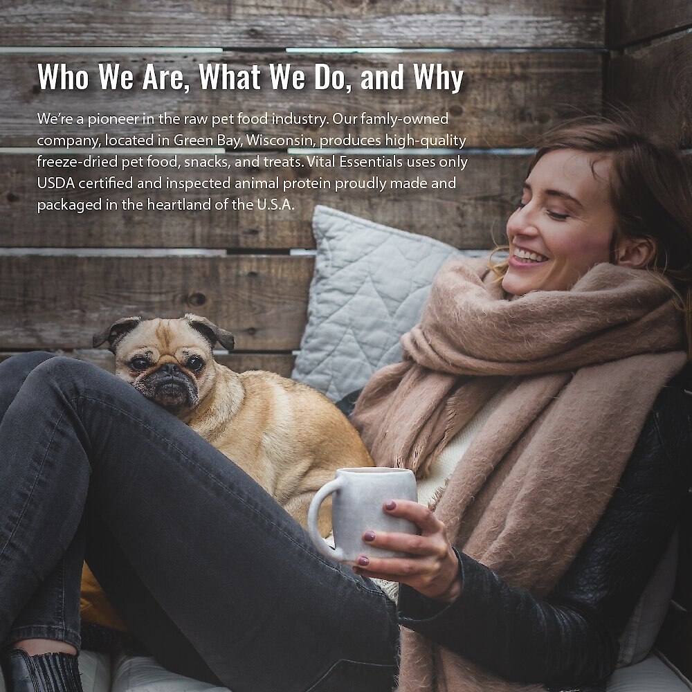 Vital Essentials creates healthy, delicious, and biologically appropriate food using real, ethically sourced meat and premium ingredients. Made right here in the USA, because your best friend deserves nothing less.