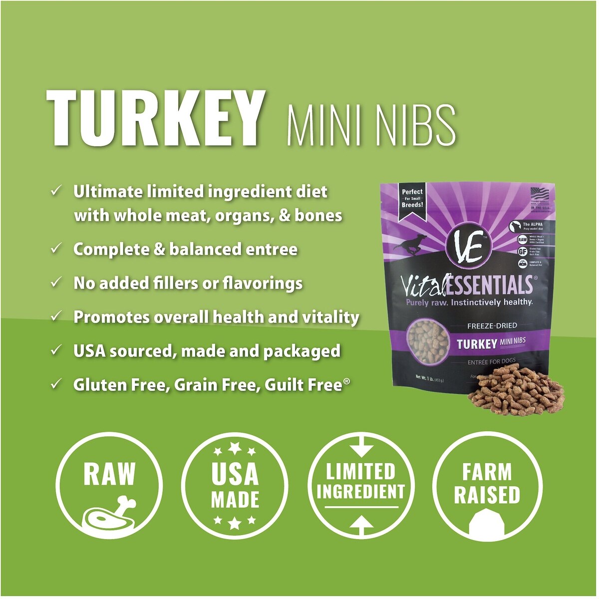 Vital Essentials Turkey Entree Mini Nibs Grain-Free Freeze-Dried Dog Food, 1-lb bag