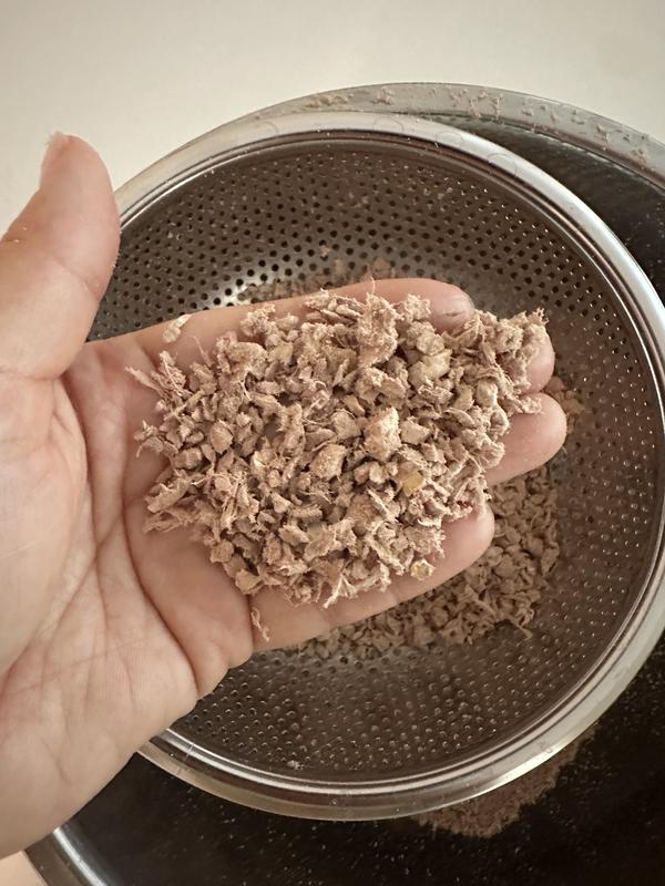 I blended it and then strained it, but this many bone fragments still came out. That was from about one-fifth of the bag. If you have small dog, be aware of this.
