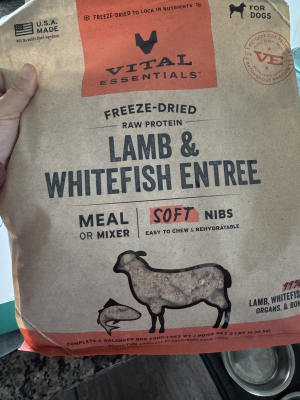 Vital Essentials Freeze-Dried Raw Lamb & Whitefish Entree & Mixer Soft Nibs Dog Food, 14-oz bag