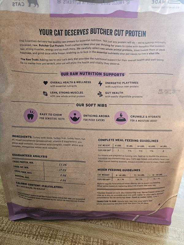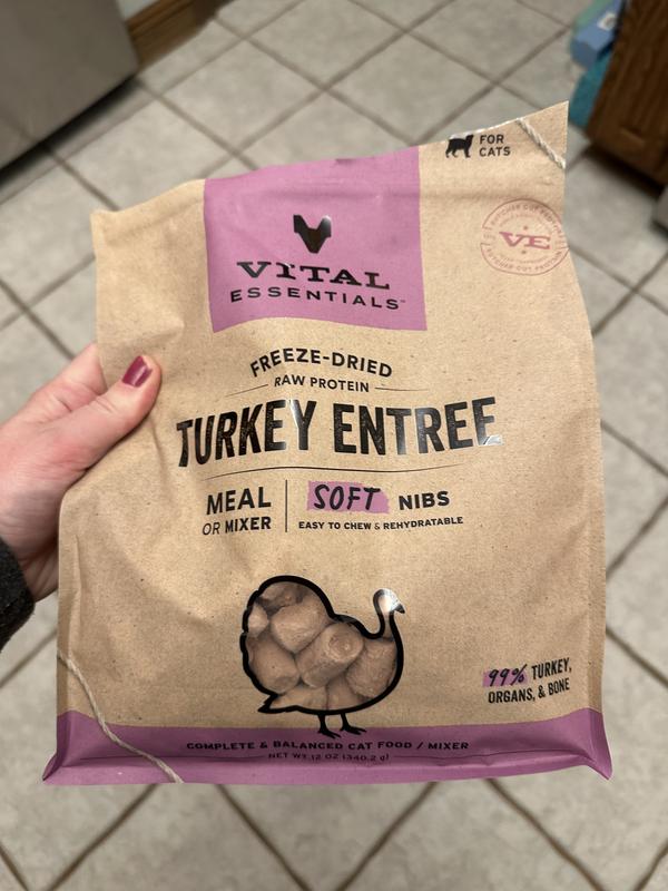Vital Essentials Freeze-Dried Raw Turkey Entree & Mixer Soft Nibs Cat Food, 12-oz bag