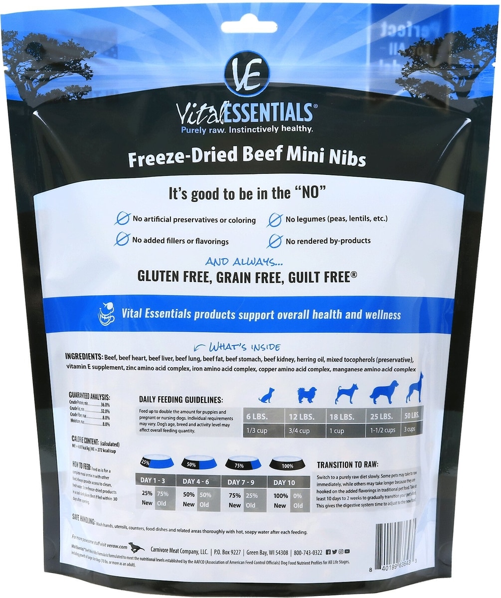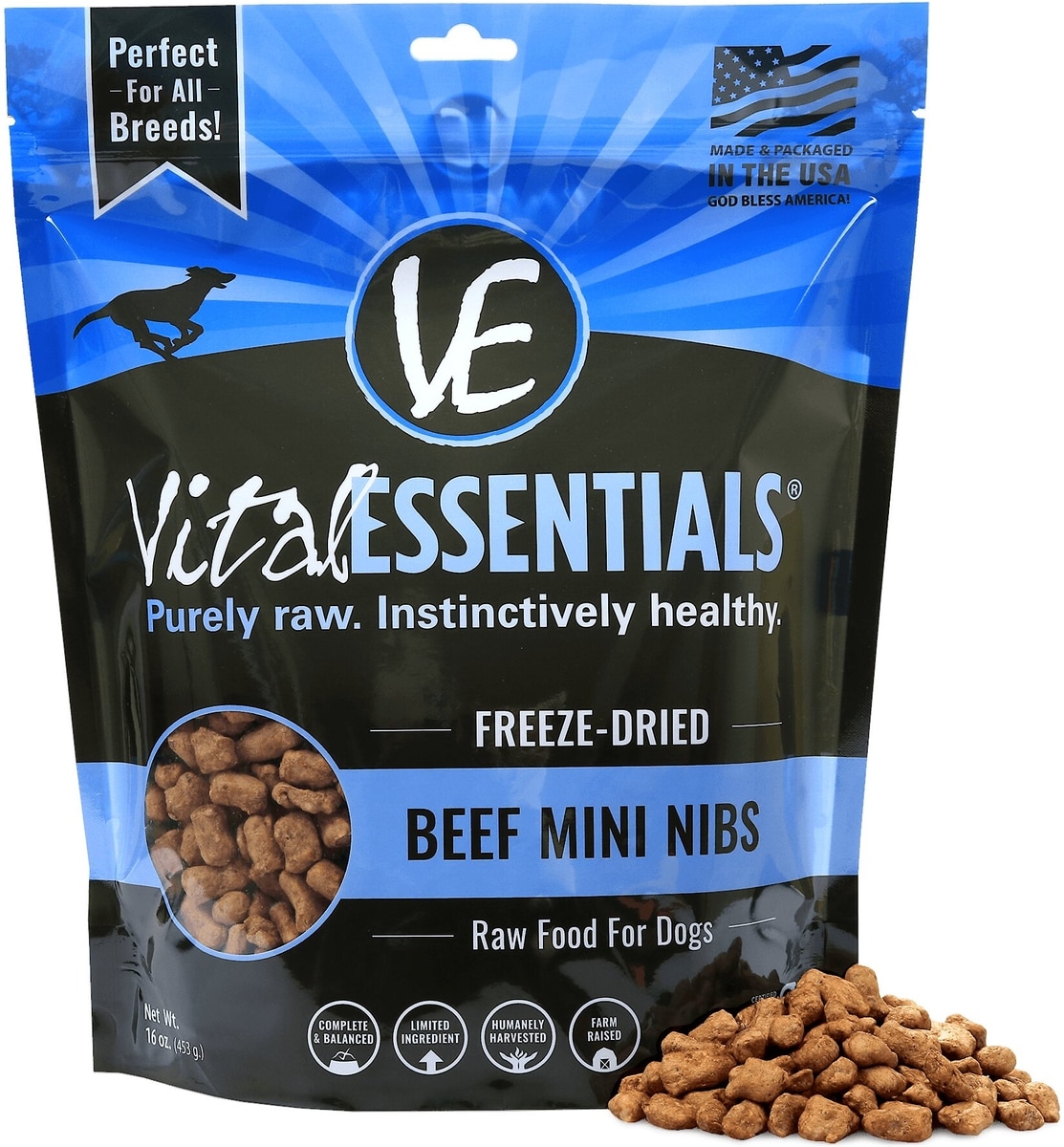 Vital Essentials Beef Mini Nibs Grain-Free Freeze-Dried Dog Food, 1-lb bag
