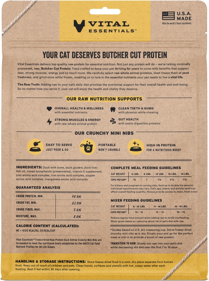Vital Essentials Freeze-Dried Raw Duck Entree & Mixer Cat Food Crunchy Nibs, 8-oz bag