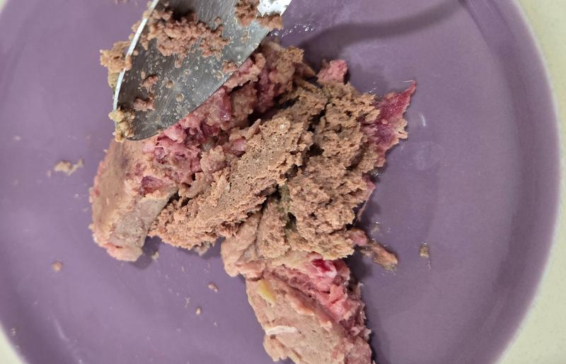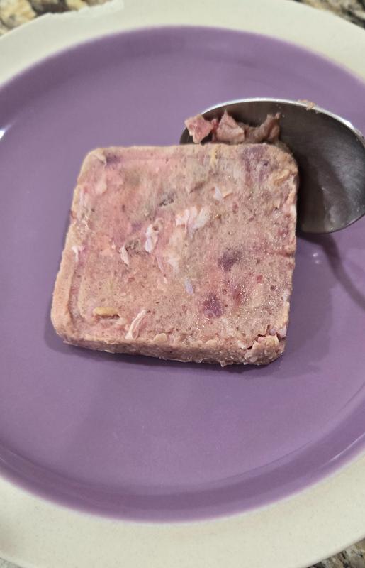 Emmet wouldn't eat this food. He's not normally a picky eater but he does have a sensitive stomach. I tried mixing a small abount with his usual wet food and also tried giving him a lick off of my finger (he usually will be curious and at least take a taste). In both instances he sniffed at the food but walked away. The food didn't have a strong smell so there must just be something about it that he didn't like. I was hoping to be able to give it a try because I like the idea of having frozen patties of fresh food. I plan on feeding it to the "barn kitties" so that it doesn't go to waste.