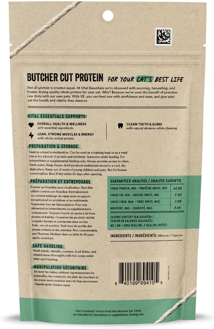 • These freeze-dried raw cat treats are packed with extra protein from premium, responsibly sourced minnows for the peak nutrition your kitty deserves.
