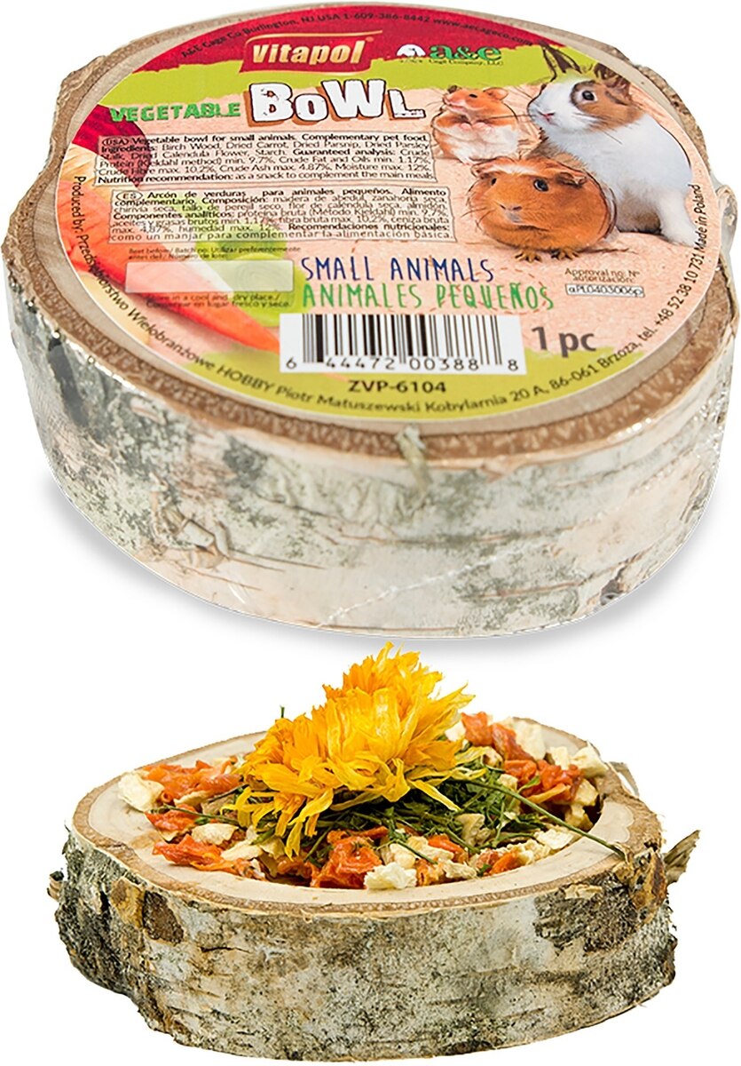 Vitapol by A&E Cage Company Wooden Treat Vegetable Bowl Small Animal Treats