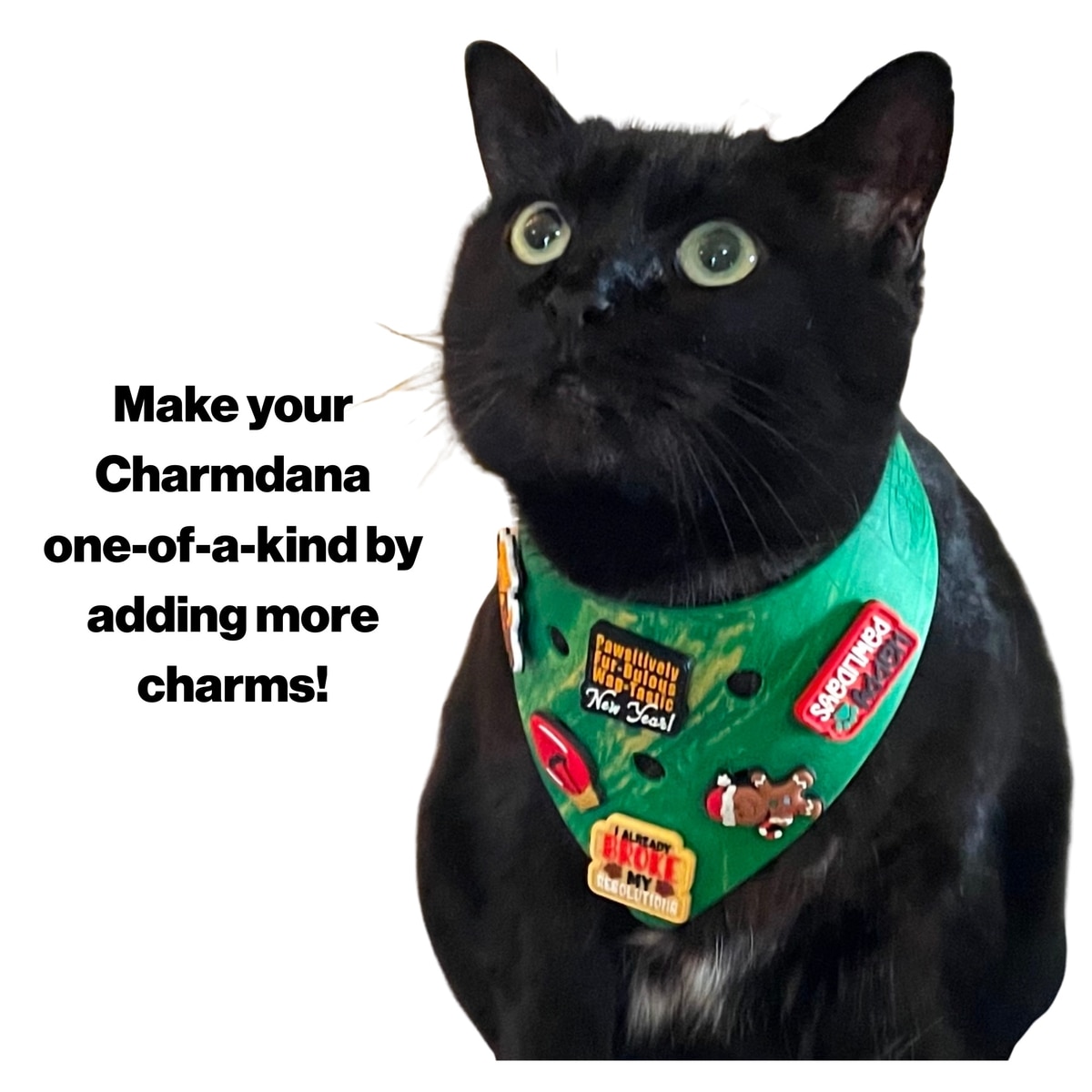 WagAround Town Charmdana Christmas Waterproof Flexible Customizable Dog Bandana with Charms, Green, Small