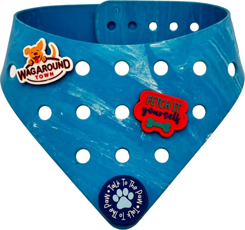 WagAround Town Charmdana Waterproof Flexible Customizable Dog Bandana with Charms, Blue Wave, Large
