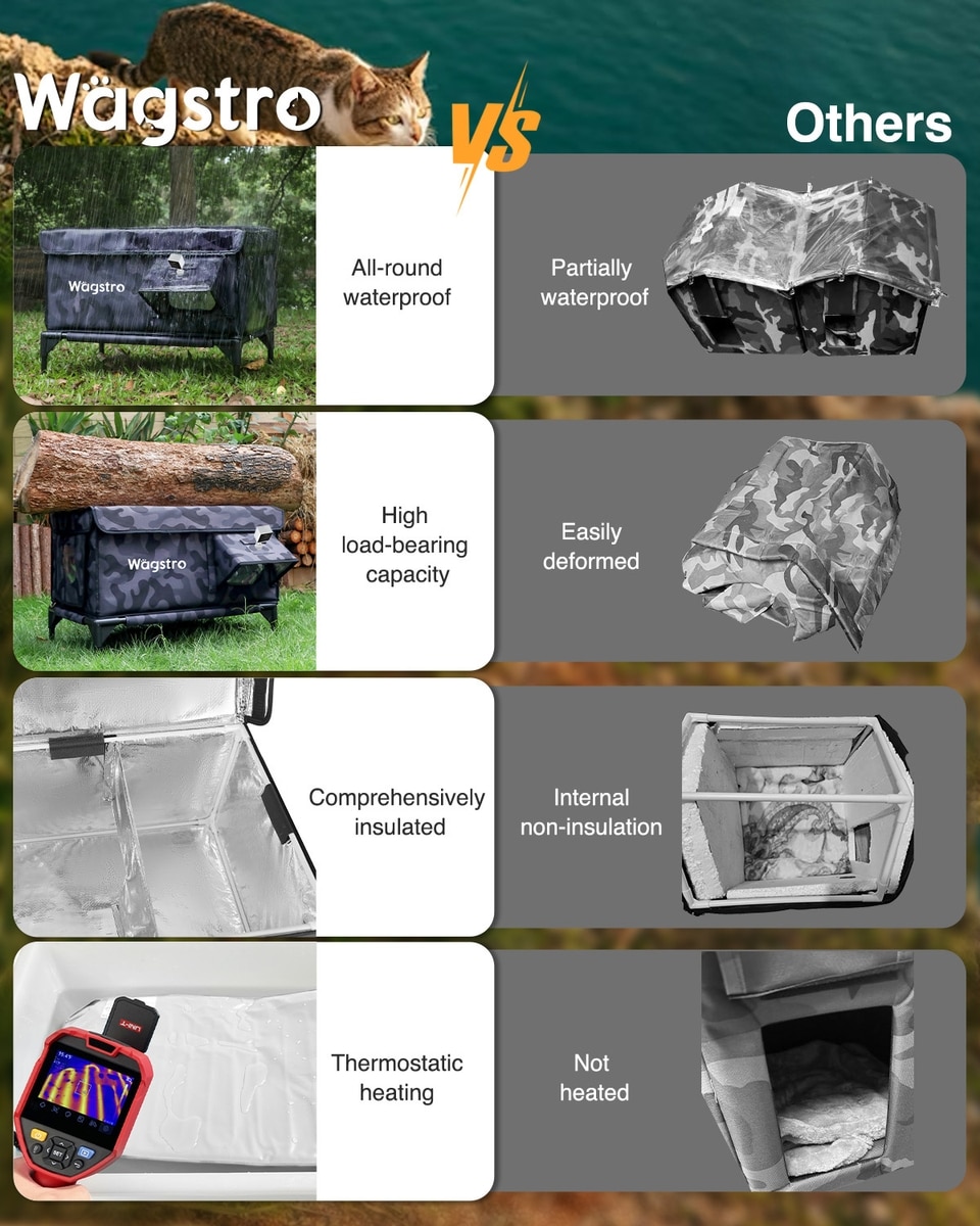 Wagstro Camera Ready Interior Rainproof One-Way Exit Panel Polyester Outdoor Heated Cat House, Large, Black
