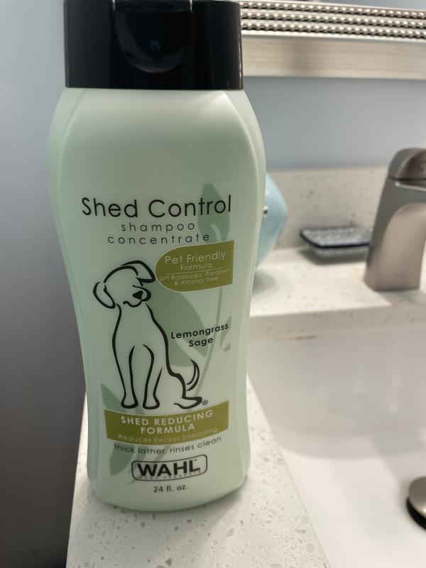 The shed control shampoo from Wahl lathers up well. It takes very little shampoo to lather up my 45 lb beagle mix. It also rinses easily from his coat and left his coat shiny and silky. I think it did help some with his shedding. This is the first time trying a shed control shampoo so I don't know what to expect. Some shampoos make him itchy but I have not seen him scratching since we bathed him.