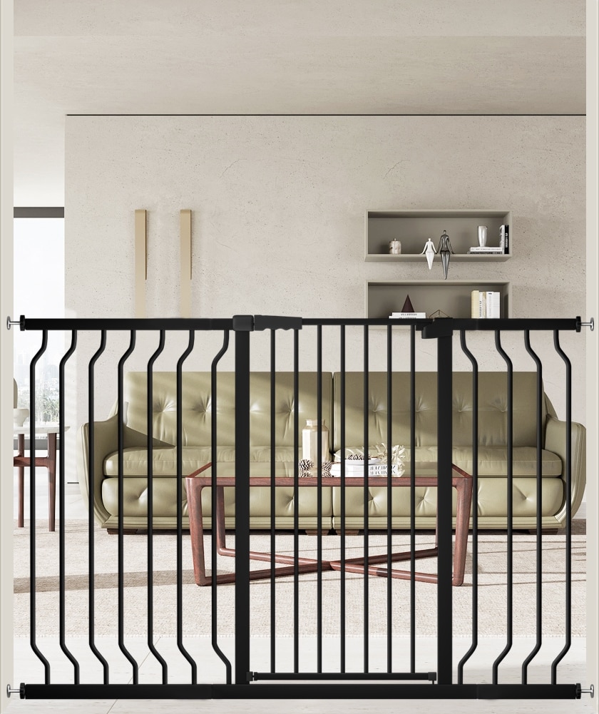 WAOWAO Extra Tall Pressure Mounted Adjustable Metal Pet Dog Gate, 40.55-in x 47-64-in, Black