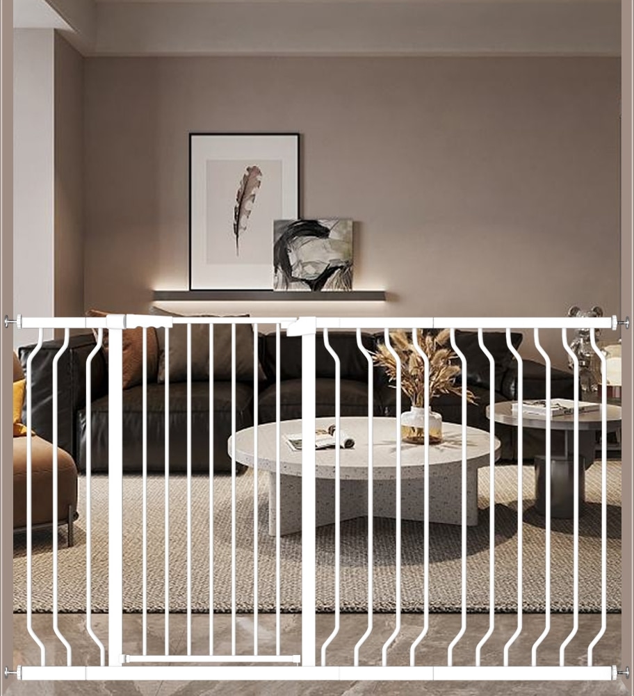 WAOWAO Extra Tall Pressure Mounted Adjustable Metal Pet Dog Gate, 40.55-in x 47-64-in, White