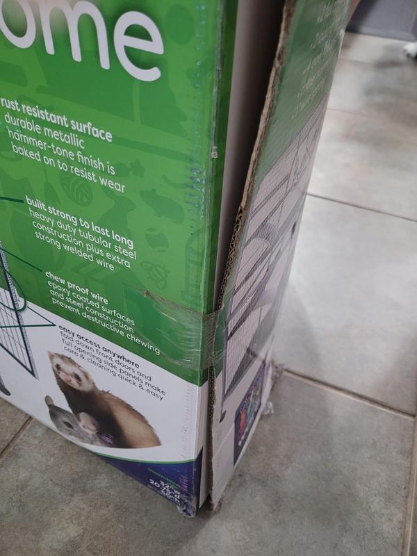 We decided to upgrade our Penelope’s cage to something more sturdy and something she’s unlikely to get out of like her current cage. We picked this due to the ability to easily remove the bottom for cleaning. It came in 2 days (impressive). We started putting it together and its about as much a headache as anything else until we got to the doors. They wouldn’t go on the hinges and we realized there was rust on the inside of where they go in, and the top of the metal was breaking away. We start looking at other pieces and get to a side wall that has rust in 3 of 4 corners on each side and down the wires. Chewy is amazing and sending a replacement, so we will see if this is a fluke. It is otherwise sturdy and would be an amazing home for furry creatures without this issue. If you order it, look at all parts for large amounts of rust before putting it together to save time.