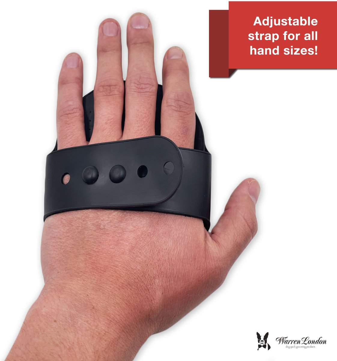 • Flexible, durable design features an adjustable strap that fits all hands.