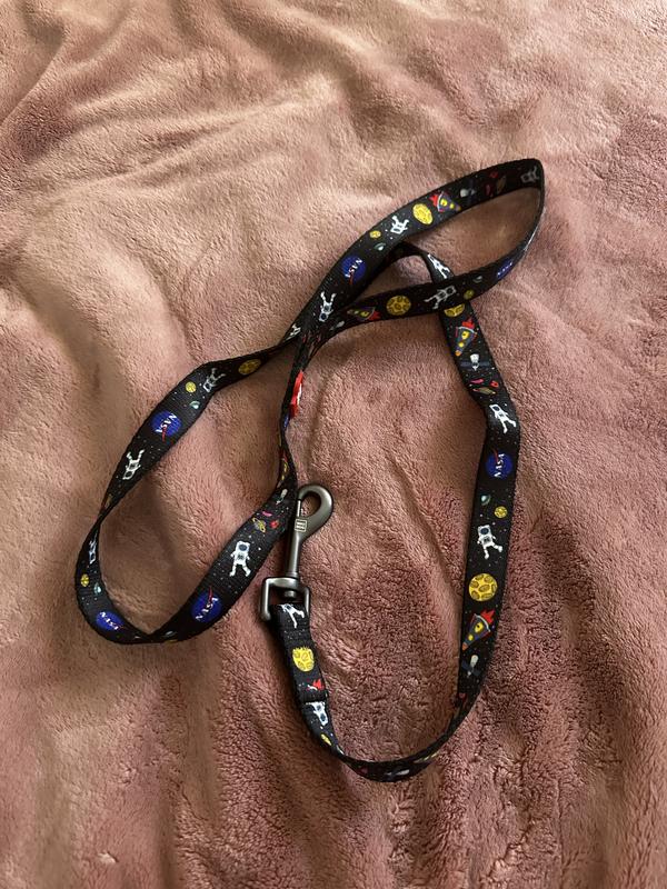 This 4-foot, 13/16-inch wide leash is perfect for daily walks, training, and vet visits. It is made of durable nylon that will not fray or fade even after prolonged use. The metal parts will not rust, making it durable Users say that the leash is easy to clean and dries quickly, which is especially convenient in all weather conditions The NASA print design adds a stylish look and makes your pet stand out from the crowd Some users wish the leash had a ring to attach a bag holder, but overall they are happy with the quality and functionality If your pet weighs up to 110 pounds, this leash is a great choice for you