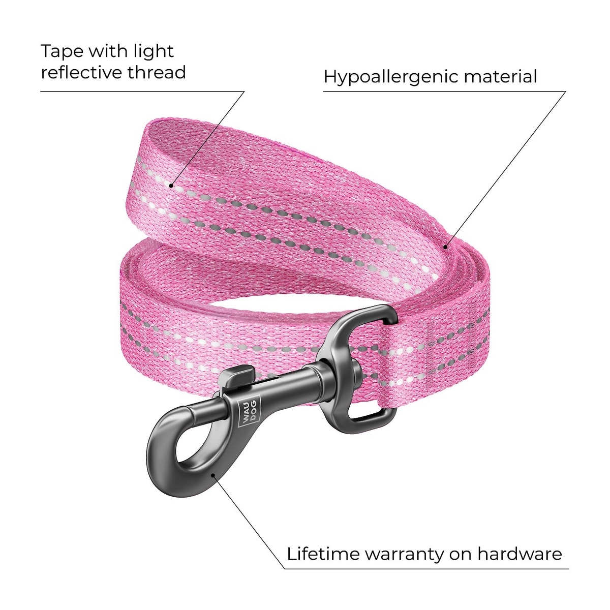 WAUDOG Reflective Cotton Dog Leash, Pink, Large/XX-Large, 10-ft