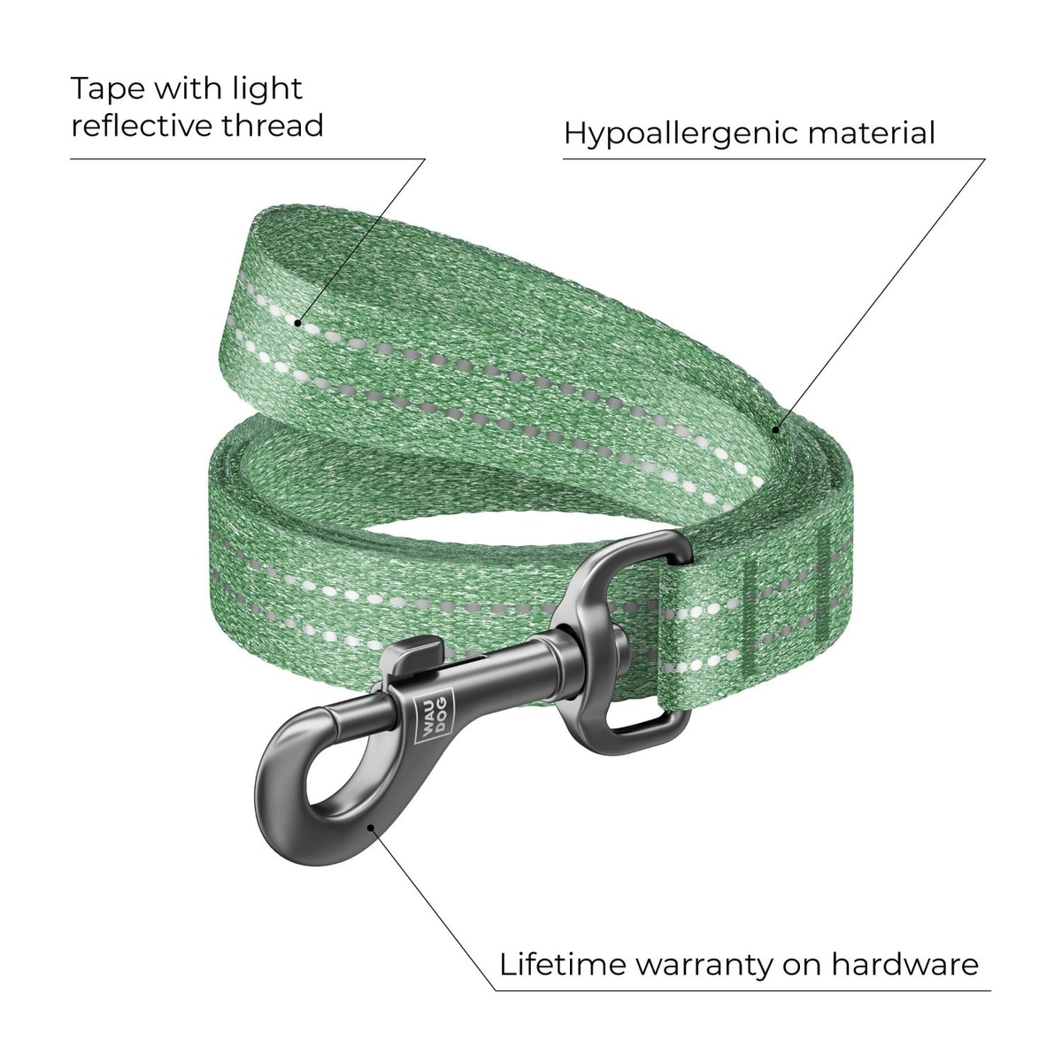 WAUDOG Reflective Cotton Dog Leash, Green, Small/Medium, 10-ft