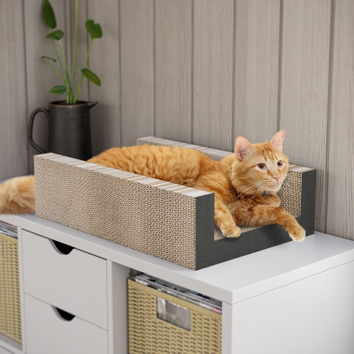 Handy cat bed and cat scratcher combination.