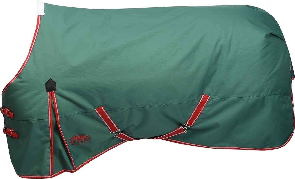 WeatherBeeta ComFiTec Prelim Standard Neck Lite Horse Turnout, Dark Green/Red/White, 78-in