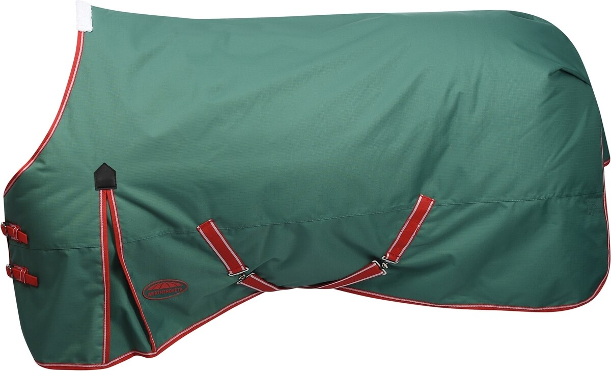 WeatherBeeta ComFiTec Prelim Standard Neck Lite Horse Turnout, Dark Green/Red/White, 72-in
