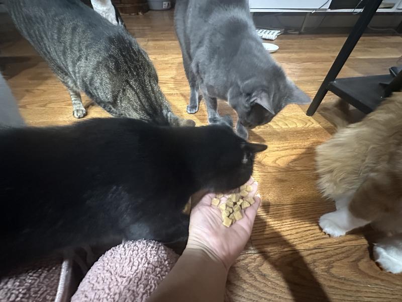 From the very first opening of the package, these treats captured my cats’ full attention and their enthusiasm never faded. Every one of my cats adored them, eagerly gathering the moment they heard the bag. What truly sets these treats apart, however, is not only their irresistible taste but their thoughtfully crafted nutritional benefits. I have a cat with immune challenges, so I am especially selective about what I offer, and these treats gave me genuine peace of mind. They are made with quality ingredients that support overall wellness, helping to nourish my cats from the inside out rather than serving as an empty indulgence. I noticed no digestive issues, only happy, satisfied cats who clearly felt good after enjoying them. It is rare to find a product that balances palatability with meaningful health support so seamlessly. These treats have become a trusted part of our routine, loved equally by my healthy cats and my more sensitive one, making them a staple in our home.