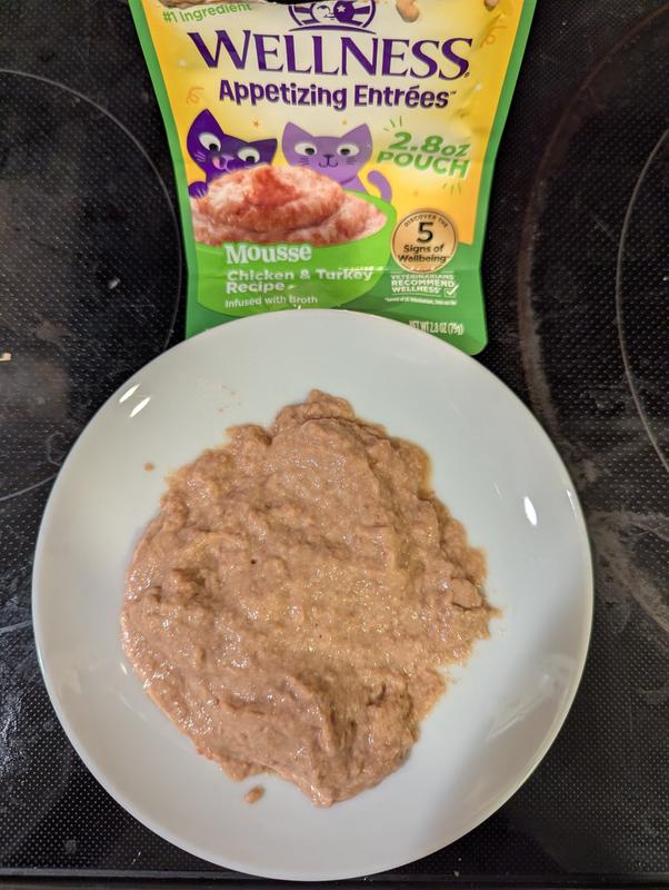 - Wellness Appetizing Entrees Infused Chicken Broth Natural Grain-Free Mousse Wet Cat Food, 1.4-oz pouch, case of 8$9.52 Chewy Price$9.04 Autoship PricePromo, New Customers Only: Spend $49+, Get $20 eGift Card