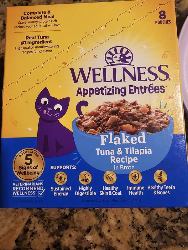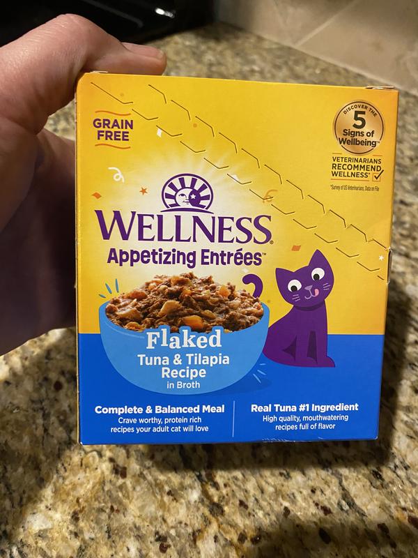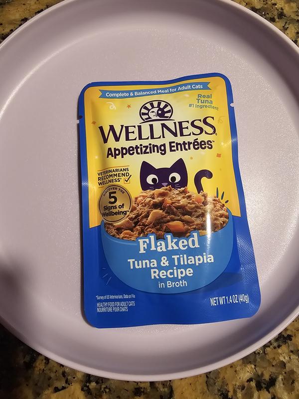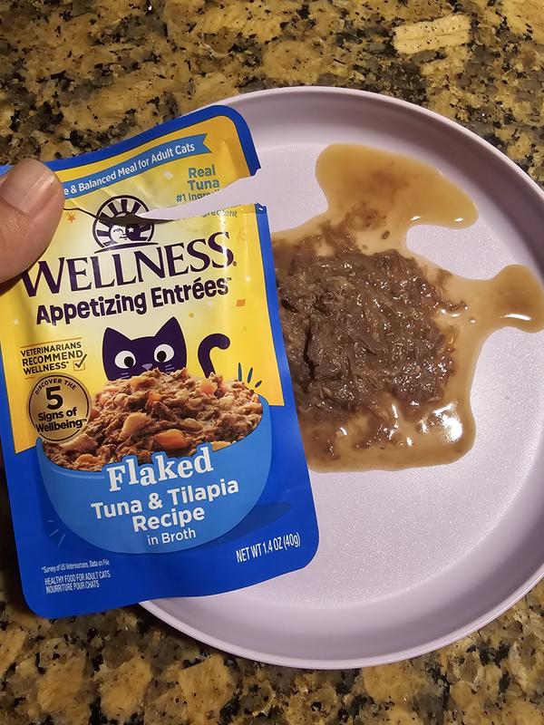 - DealWellness Appetizing Entrees Flaked Tuna Recipe in Broth Natural Wet Cat Food, 1.4-oz pouch, case of 8$9.52 Chewy Price$9.04 Autoship PricePromo, Spend $100, Get $30 eGift Card with code NEWYEAR +1 deal