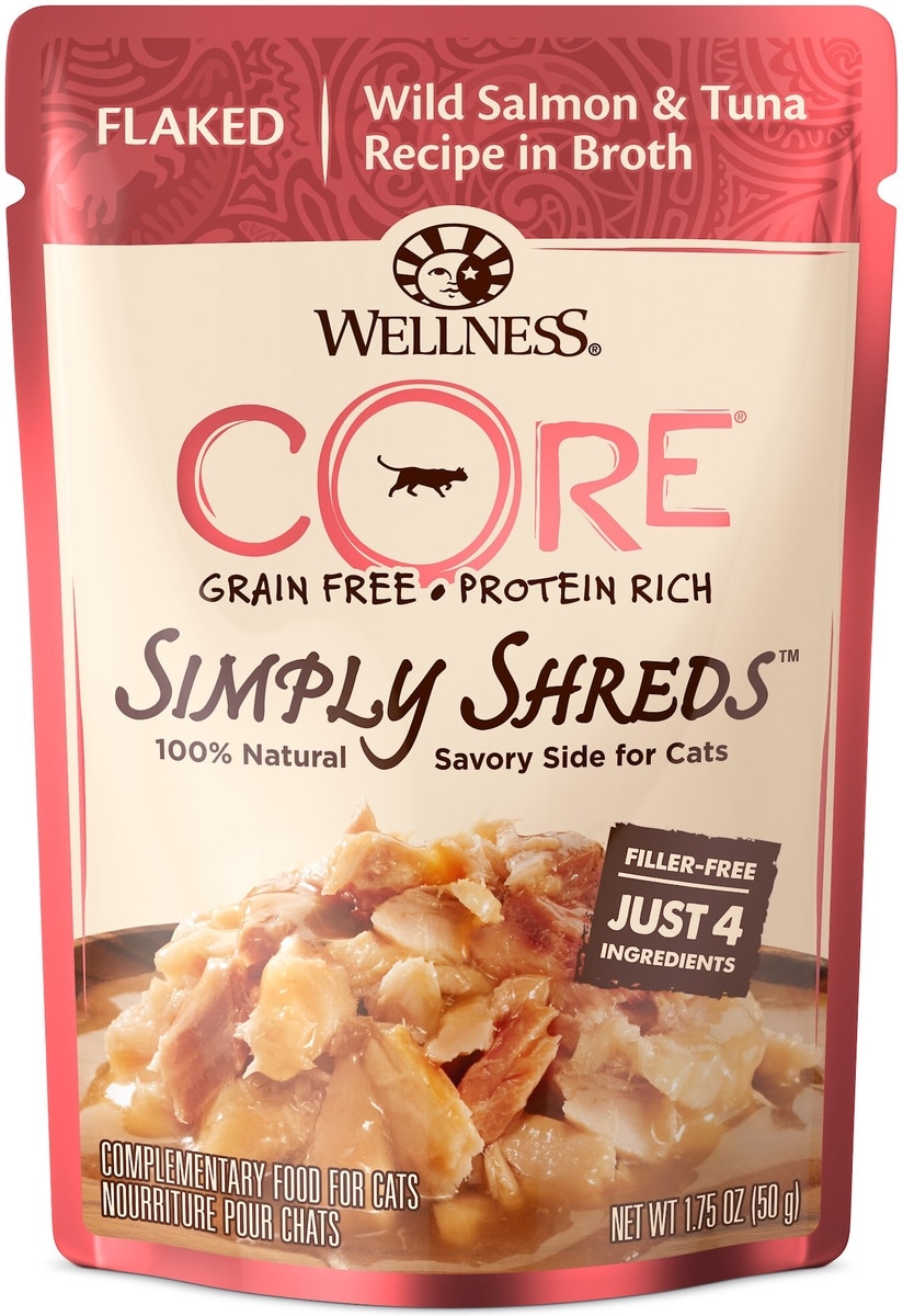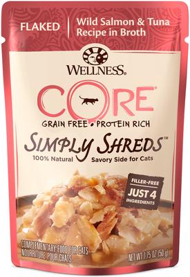 Wellness CORE Simply Shreds Grain-Free Wild Salmon & Tuna Wet Cat Food Topper, 1.75-oz, case of 12