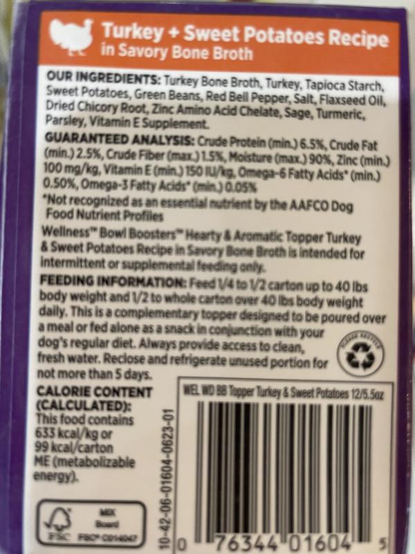 - Wellness Bowl Boosters Hearty Toppers Beef Wet Dog Toppers, 5.5-oz bag, 12 count$39.48 Chewy Price$37.51 Autoship PricePromo, New Customers Only: Spend $49+, Get $20 eGift Card