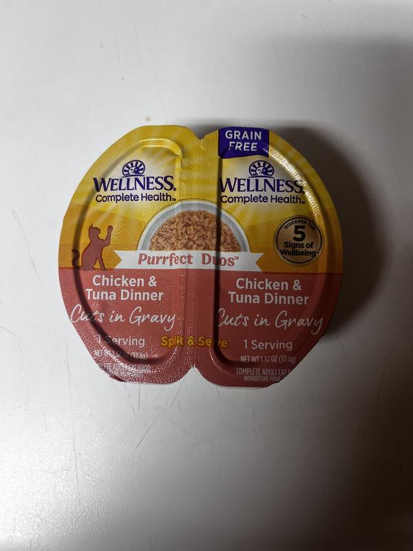 Wellness Complete Health Purrfect Duos Chicken & Tuna Grain-Free Cuts in Gravy Adult Wet Cat Food, 2.64-oz cup, case of 12