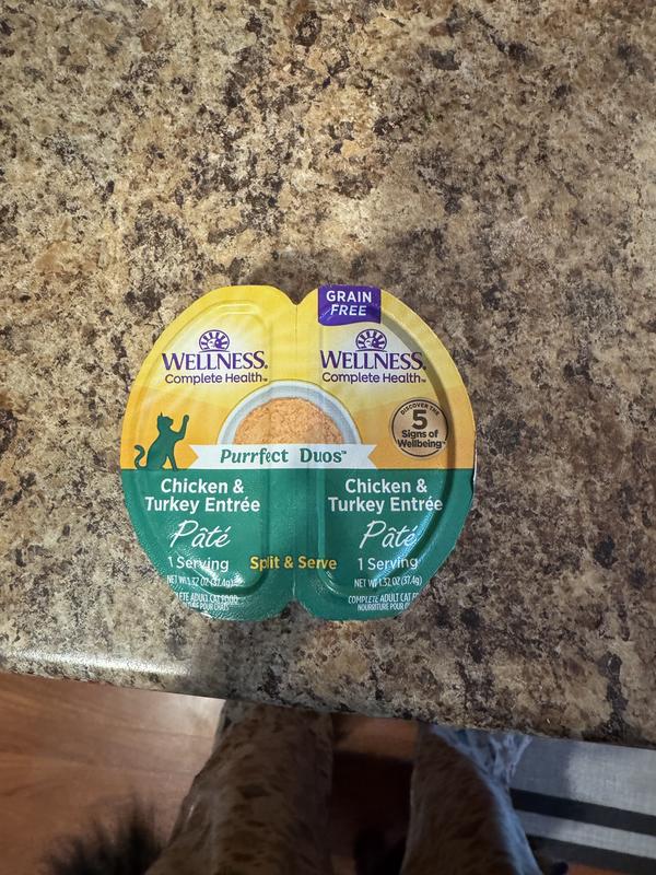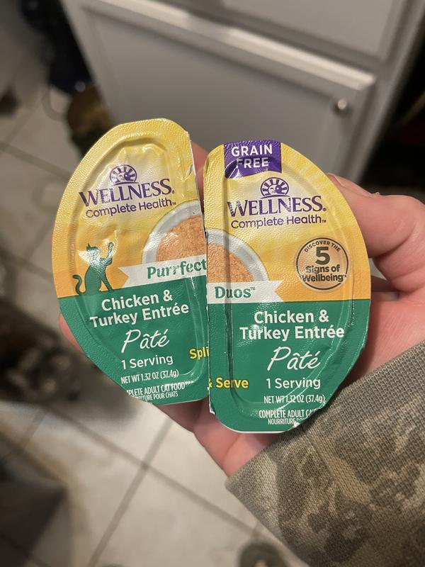 Wellness Complete Health Purrfect Duos Chicken & Turkey Grain-Free Pate Wet Cat Food, 2.64-oz cup, case of 12