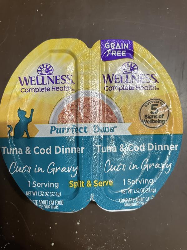 Wellness Complete Health Purrfect Duos Tuna & Cod Grain-Free Cuts in Gravy Wet Cat Food, 2.64-oz cup, case of 12