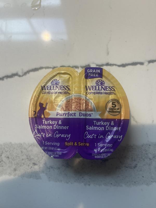 Wellness Complete Health Purrfect Duos Turkey & Salmon Grain-Free Cuts in Gravy Wet Cat Food, 2.64-oz cup, case of 12