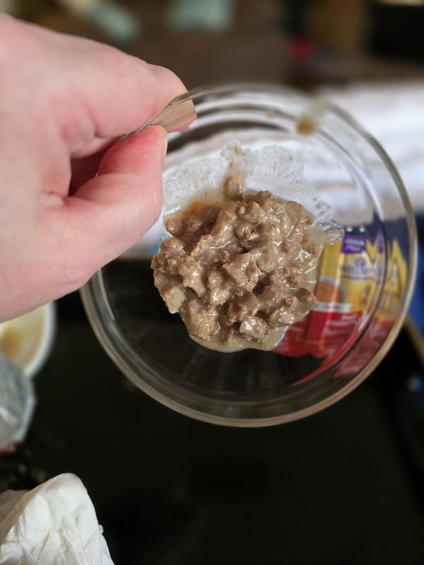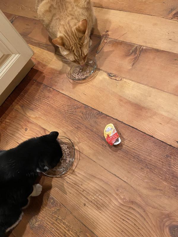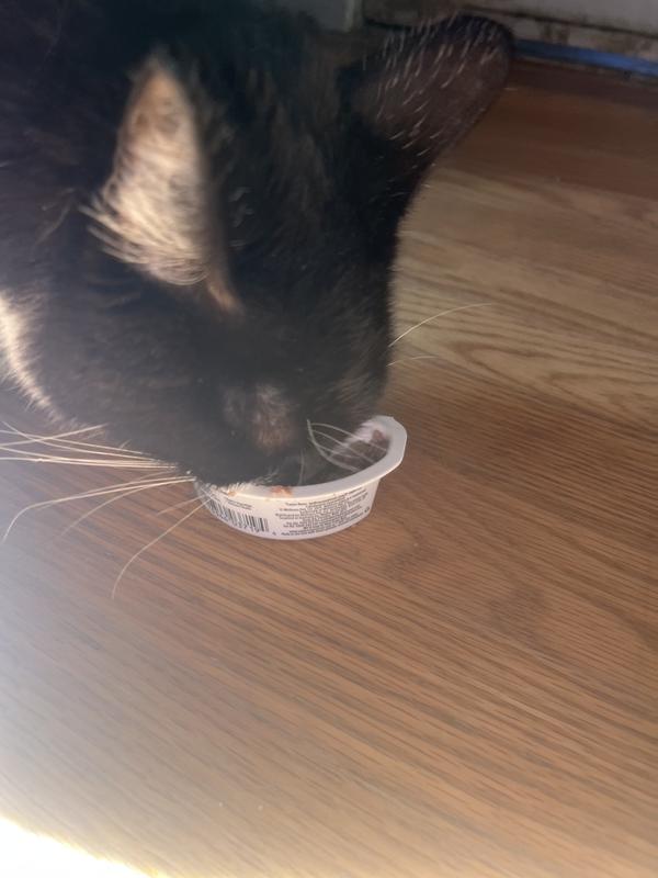 Our cats loved this food. They are not picky, but the food is great quality. The texture, thickness, density, and scent were all excellent! We normally purchase pate because chunks in gravy cat food is usually so watery... this is by far the thickest and most natural looking chunks in gravy cat food I have ever seen in decades of owning cats. The only thing I am unsure about is whether our cats would eat the plastic container, so I served the food to them in glass bowls. The plastic containers seem very convenient for travel. It's easy to peel back the top, even for people with disabilities like my husband who has Parkinson's. Overall, we would be happy to purchase this food in the future. It is definitely better than the bargain brands in the market.