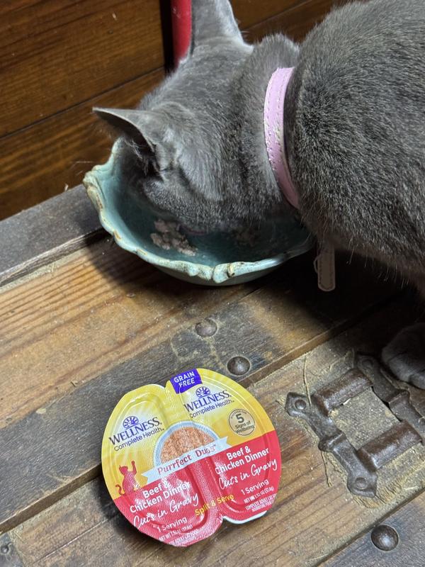 Wellness Complete Health Purrfect Duos Beef & Chicken Grain-Free Cuts in Gravy Wet Cat Food, 2.64-oz cup, case of 12