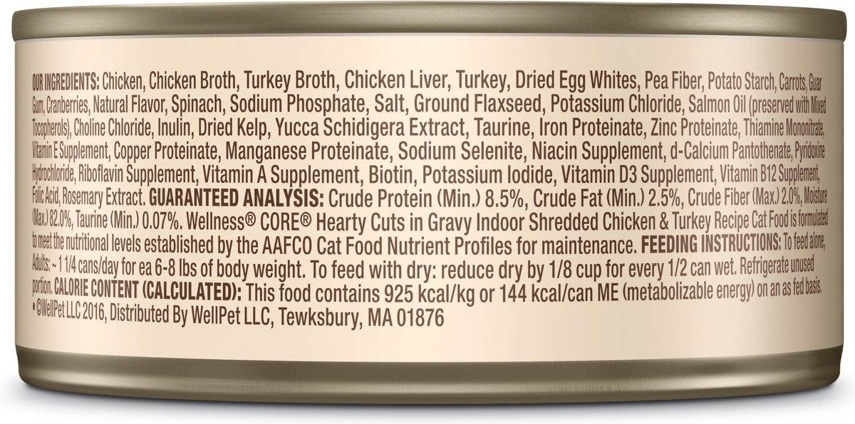 Wellness CORE Grain-Free Hearty Cuts in Gravy Indoor Shredded Chicken & Turkey Recipe Canned Cat Food, 5.5-oz, case of 24