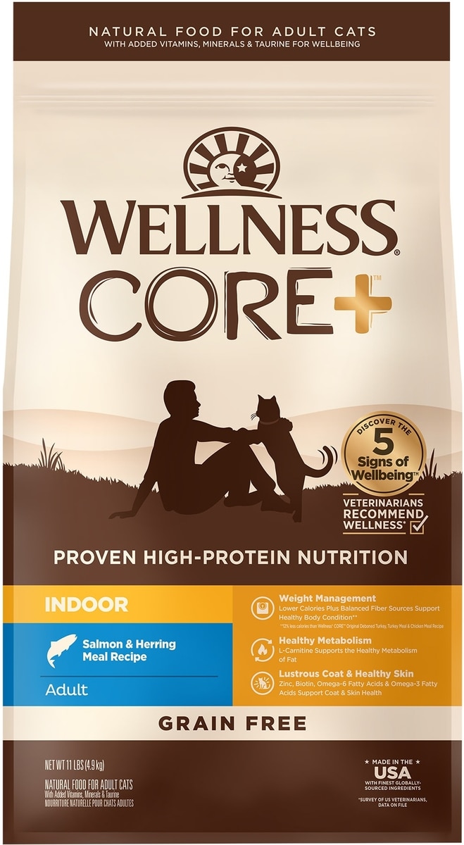 Wellness CORE+ Grain-Free Indoor Salmon & Herring Meal Recipe Dry Cat Food, 11-lb bag