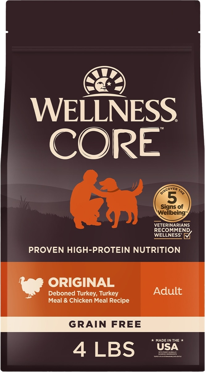 Wellness CORE Grain-Free Original Deboned Turkey, Turkey Meal & Chicken Meal Recipe Dry Dog Food, 4-lb bag