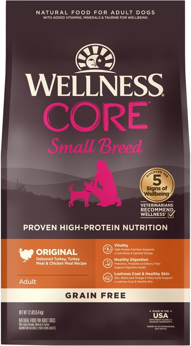 Bundle: Wellness CORE Grain-Free Small Breed Turkey & Chicken Recipe Dry Dog Food, 12-lb bag + Wellness CORE Bowl Boosters Bare Turkey Freeze-Dried Dog Food Mixer or Topper, 4-oz bag