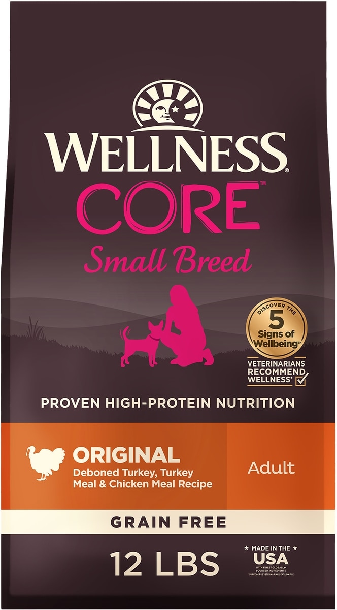 - Wellness CORE Grain-Free Small Breed Healthy Weight Deboned Turkey Recipe Dry Dog Food, 12-lb bag$47.98 Chewy Price$49.99 List Price$45.58 Autoship PricePromo, New Customers Only: Spend $49+, Get $20 eGift Card +1 deal