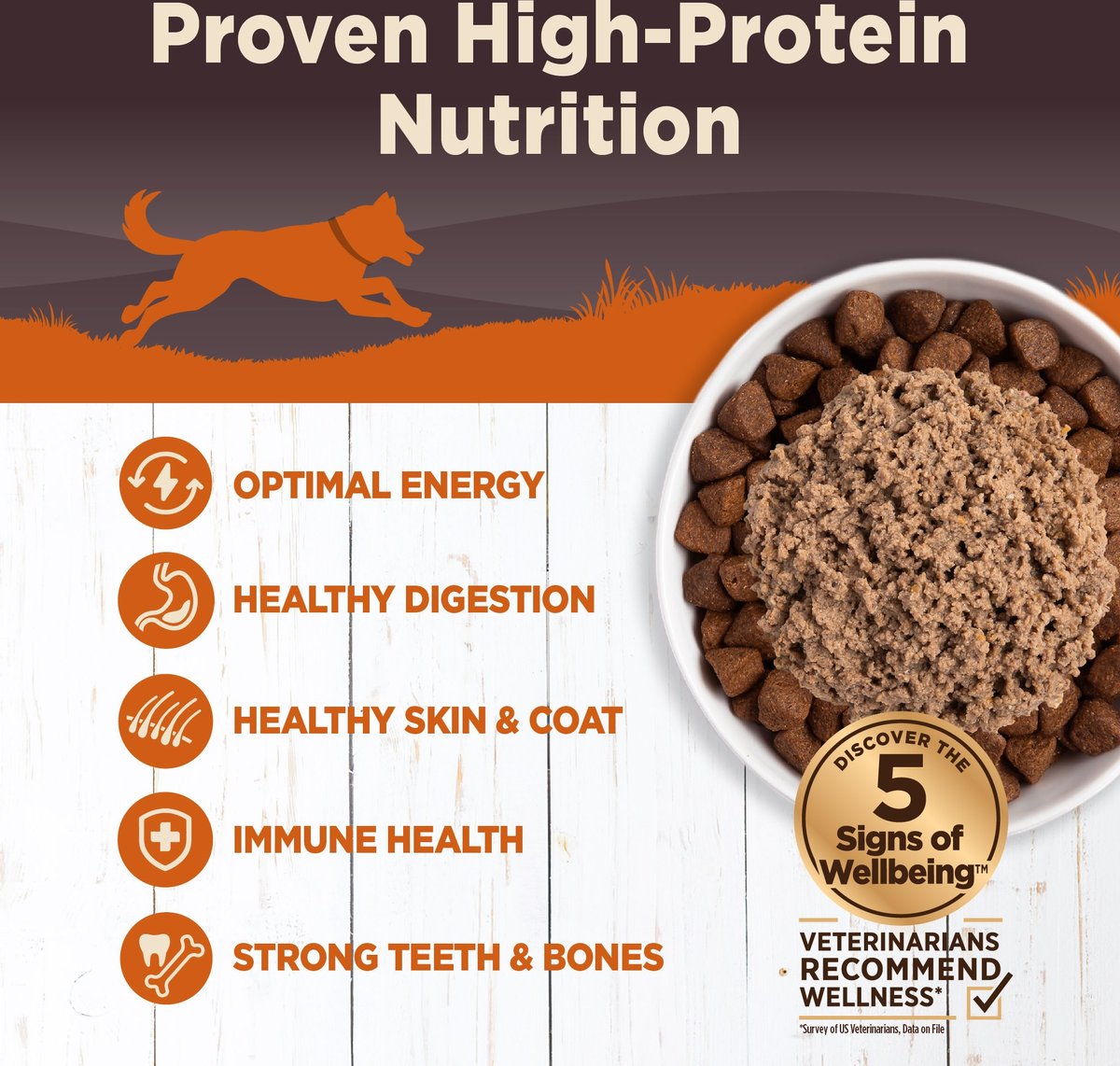 Discover the Five Signs of Well-Being Wellness Core dry dog food recipes are specially formulated to help support sustained energy, healthy digestion, healthy skin and coat, immune health, and healthy teeth and bones.