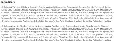 Please refer to the pictures included below for the ingredient lists. For a full nutritional breakdown and ingredient list, please refer to the individual listing of each product. Below the description, there is a "Bundle Includes" option. Click on the individual item you would like to see. There you can see a complete list of ingredients by clicking on the "Nutritional Info" tab, next to the "Description" tab, just under the product photos.