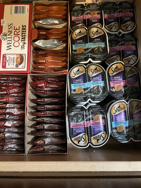 - Wellness CORE Tiny Tasters Chicken & Beef Pate Grain-Free Cat Food Pouches, 1.75-oz, pack of 12$16.80 Chewy Price$17.88 List Price$15.96 Autoship PricePromo, New Customers Only: Spend $49+, Get $20 eGift Card