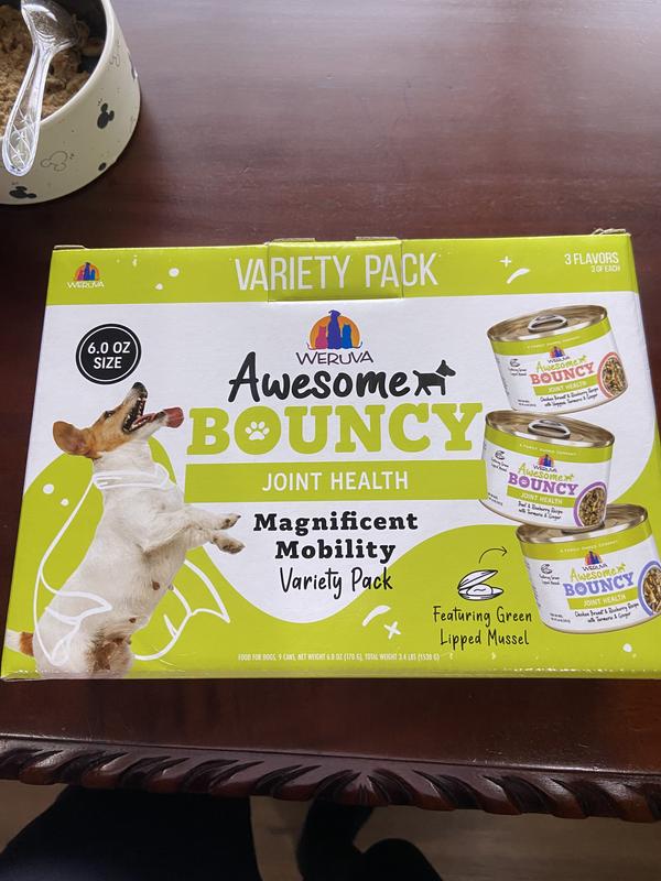 Weruva Awesome Bouncy Magnificent Mobility Variety Pack Adult Gluten-Free Chicken Shredded Canned Wet Dog Food, 14-oz can, case of 9